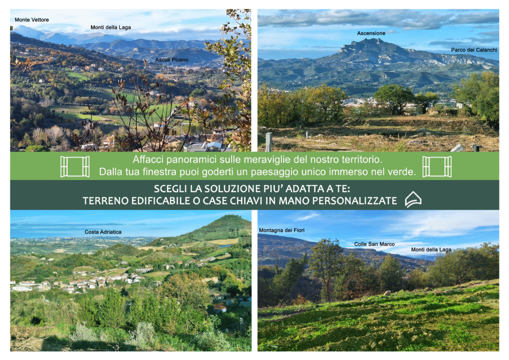 A due passi da Ascoli Piceno nasce Terraria Palazzolo, un progetto abitativo pensato per chi desidera coniugare natura, comfort e innovazione. Offriamo lotti edificabili da 45.000 €, ideali per costruire la casa dei tuoi sogni, oppure la possibilità di realizzare abitazioni moderne e sostenibili, progettate su misura per te.